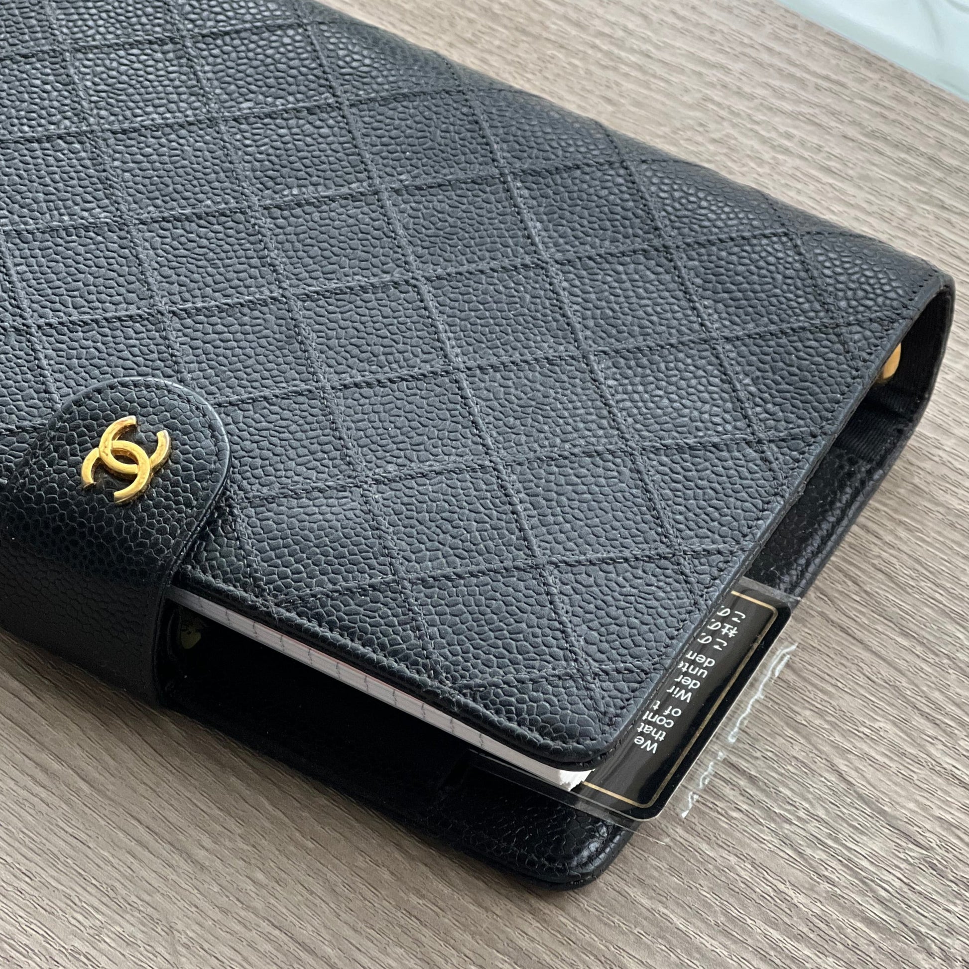 Chanel Matrasse Quilted Black MM Agenda with Card