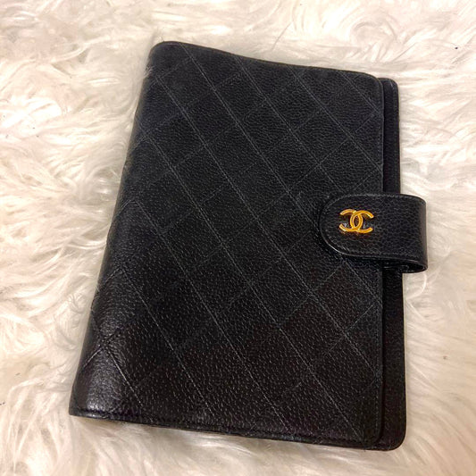 Chanel Matrasse Quilted 黒色 MM 手帳カバー