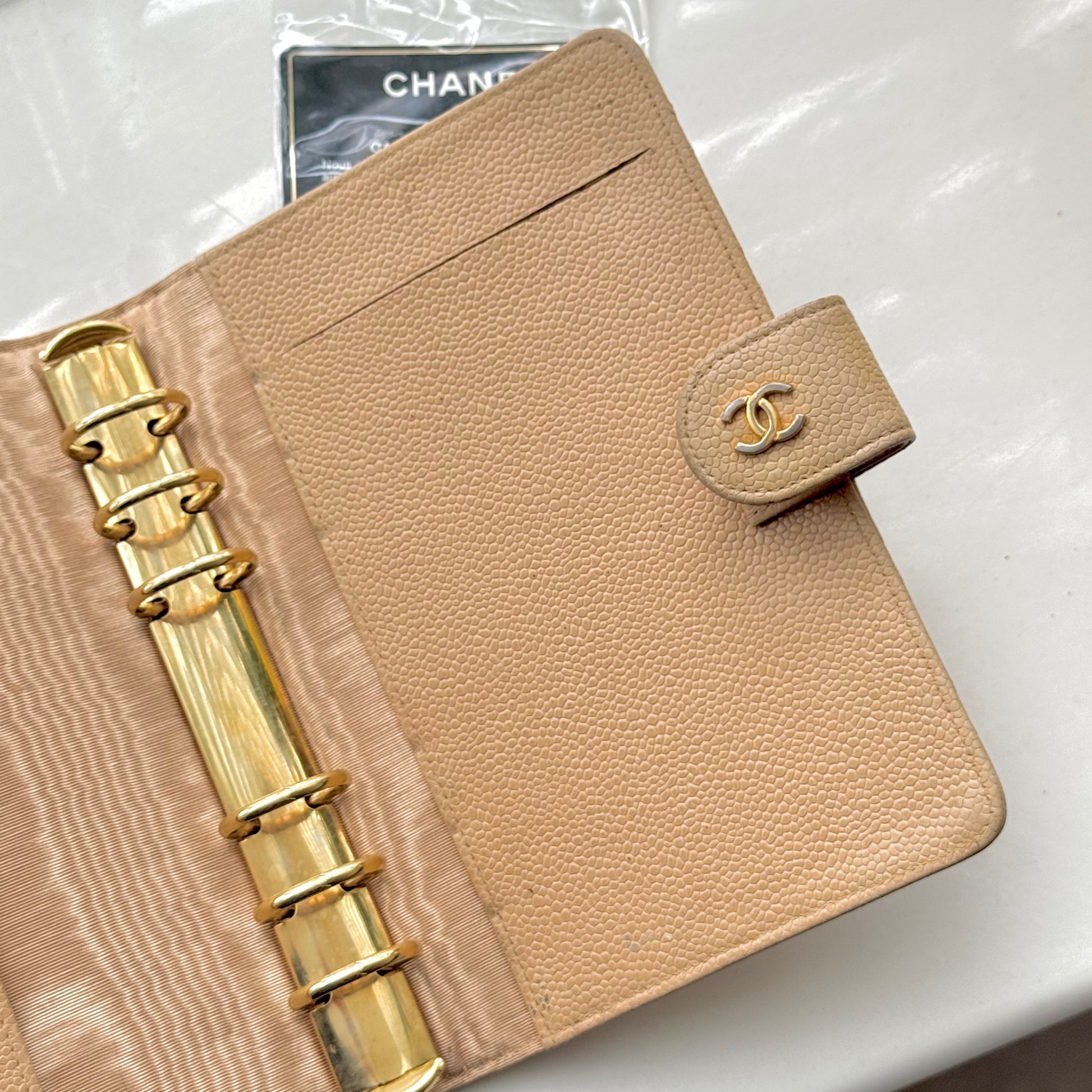 Chanel Matrasse Quilted Beige MM Agenda with card