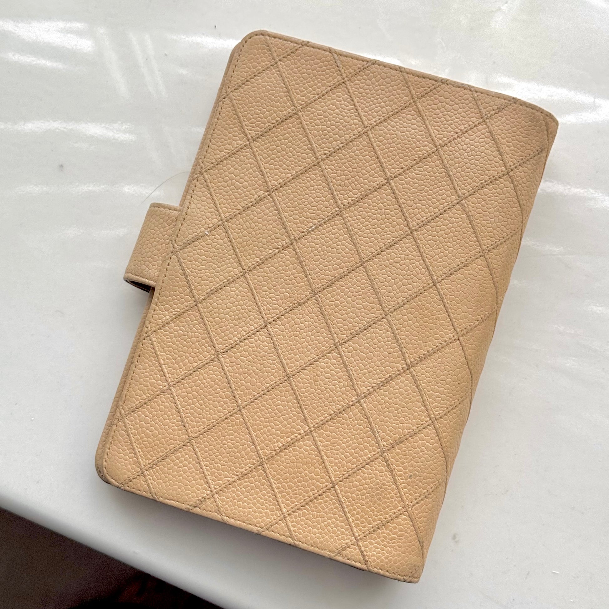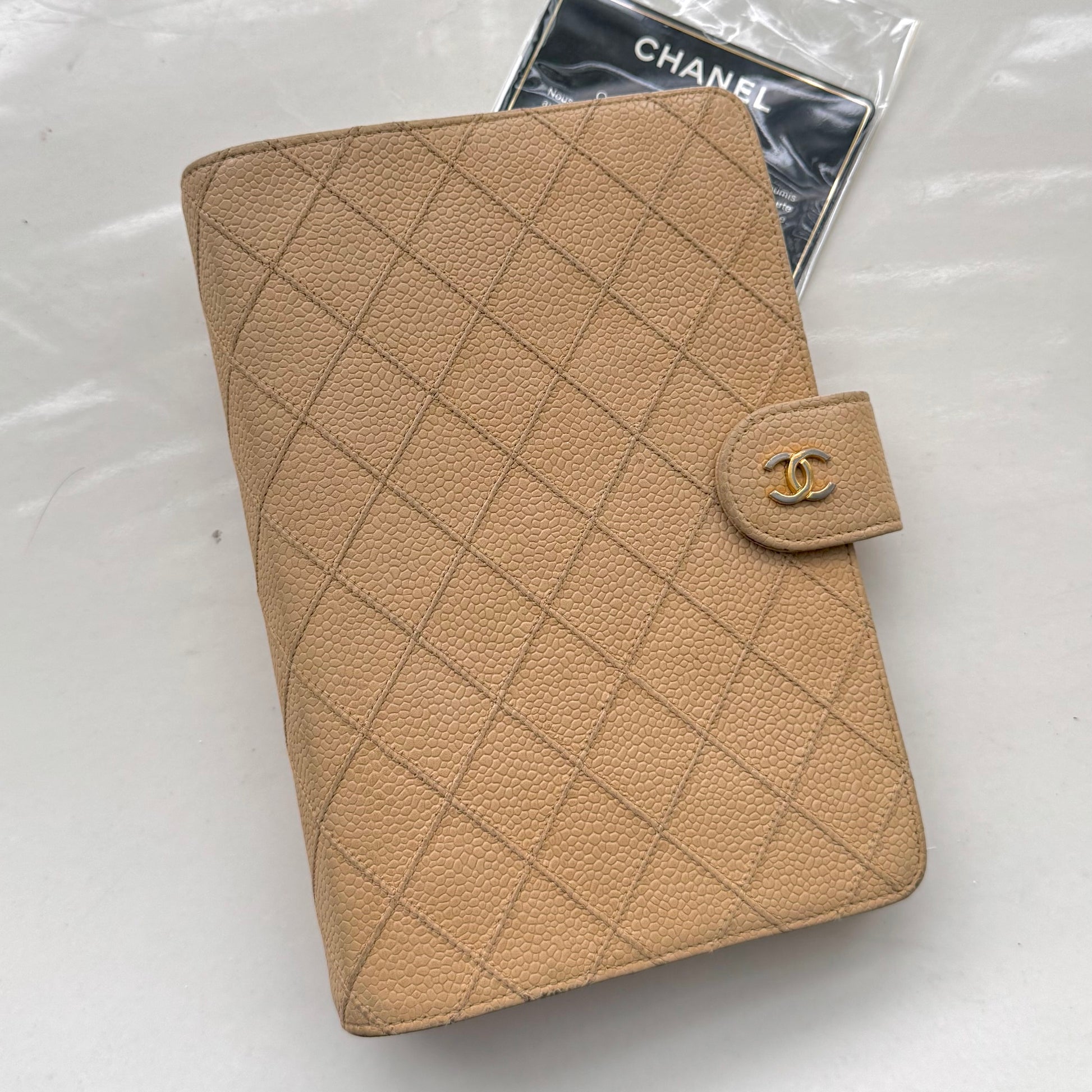 Chanel Matrasse Quilted Beige MM Agenda Cover Planner Notebook Cover - Pre-owned