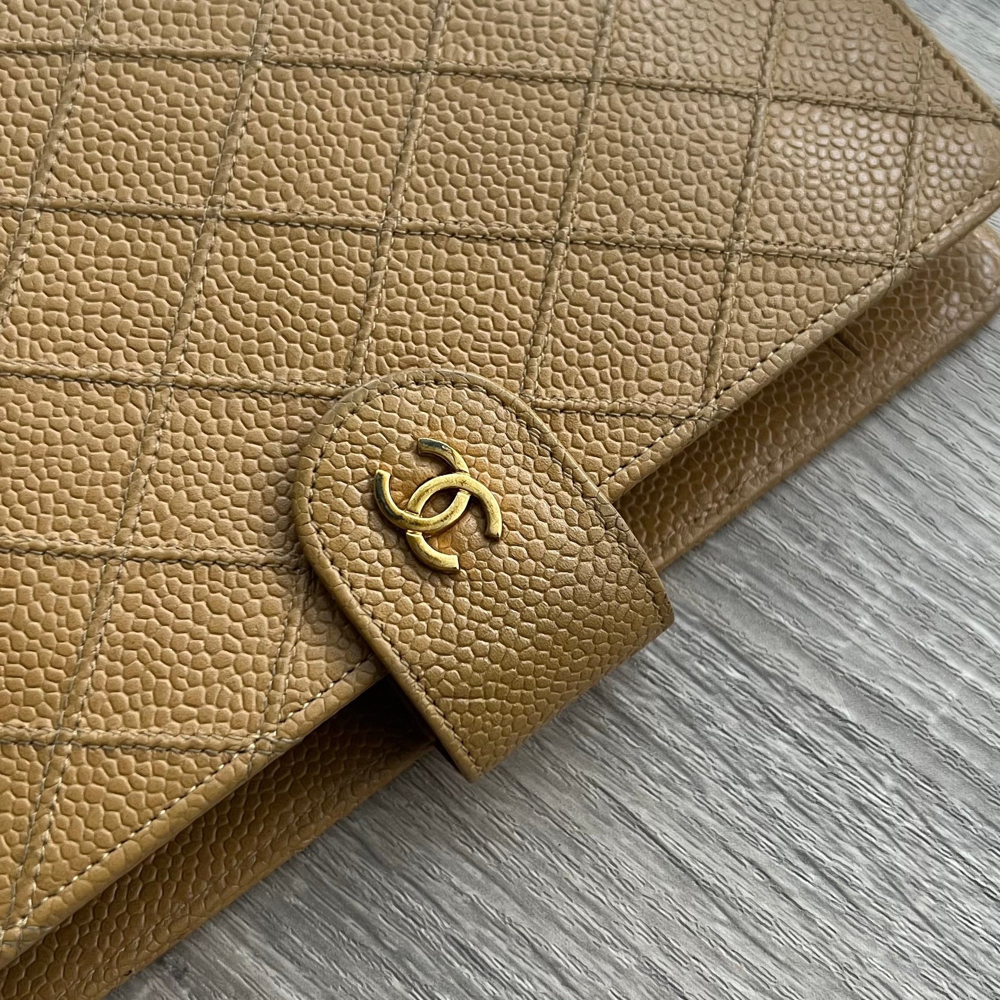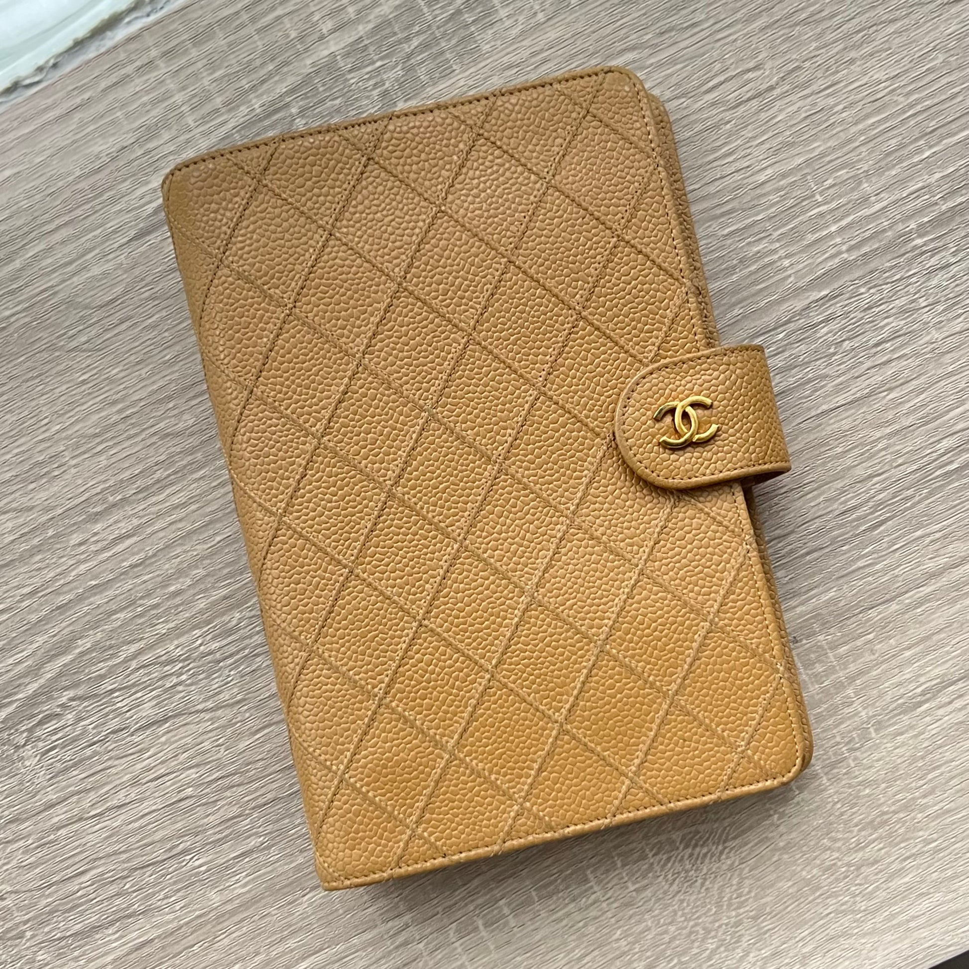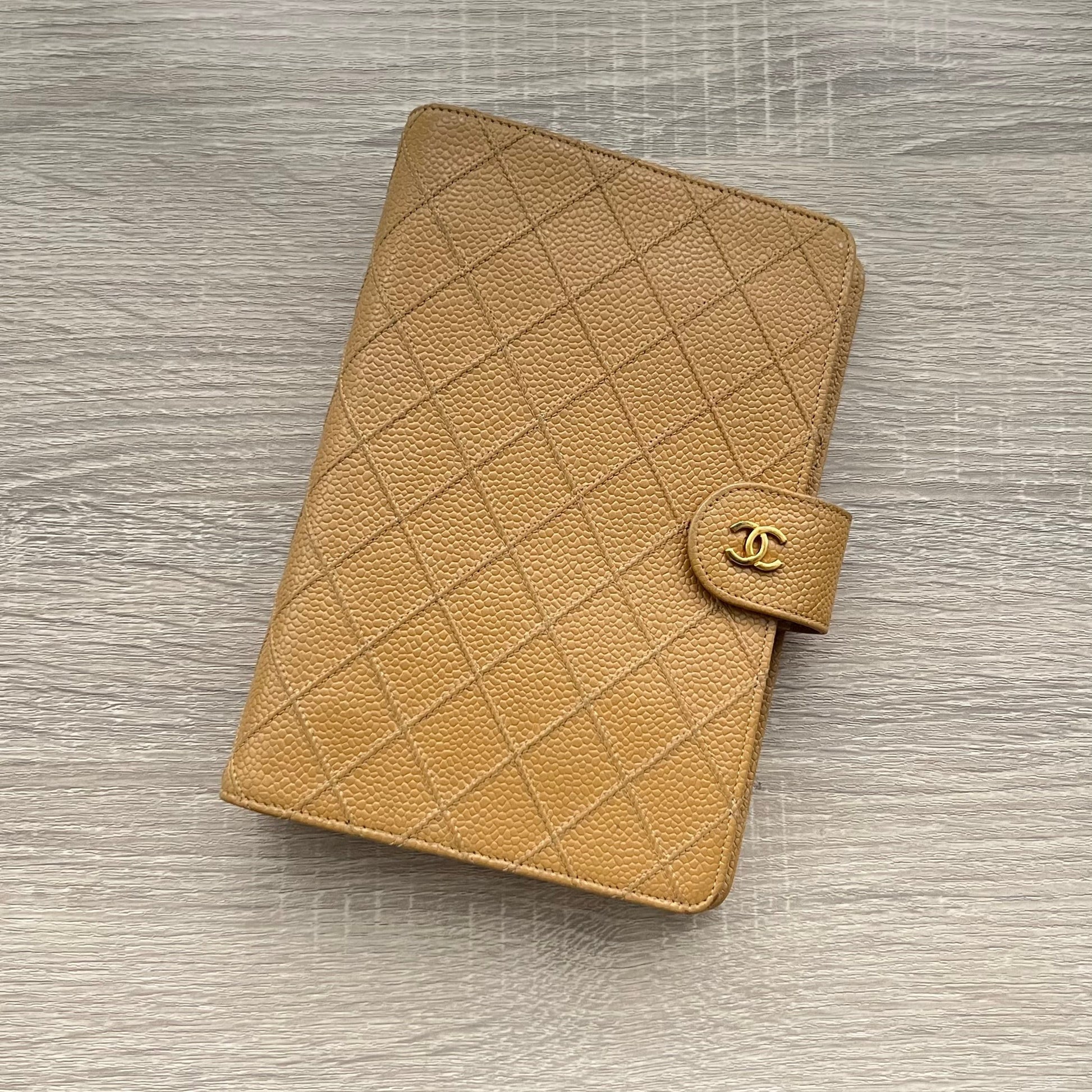 Chanel Matrasse Quilted Beige MM Agenda Cover Planner Notebook Cover - Pre-owned
